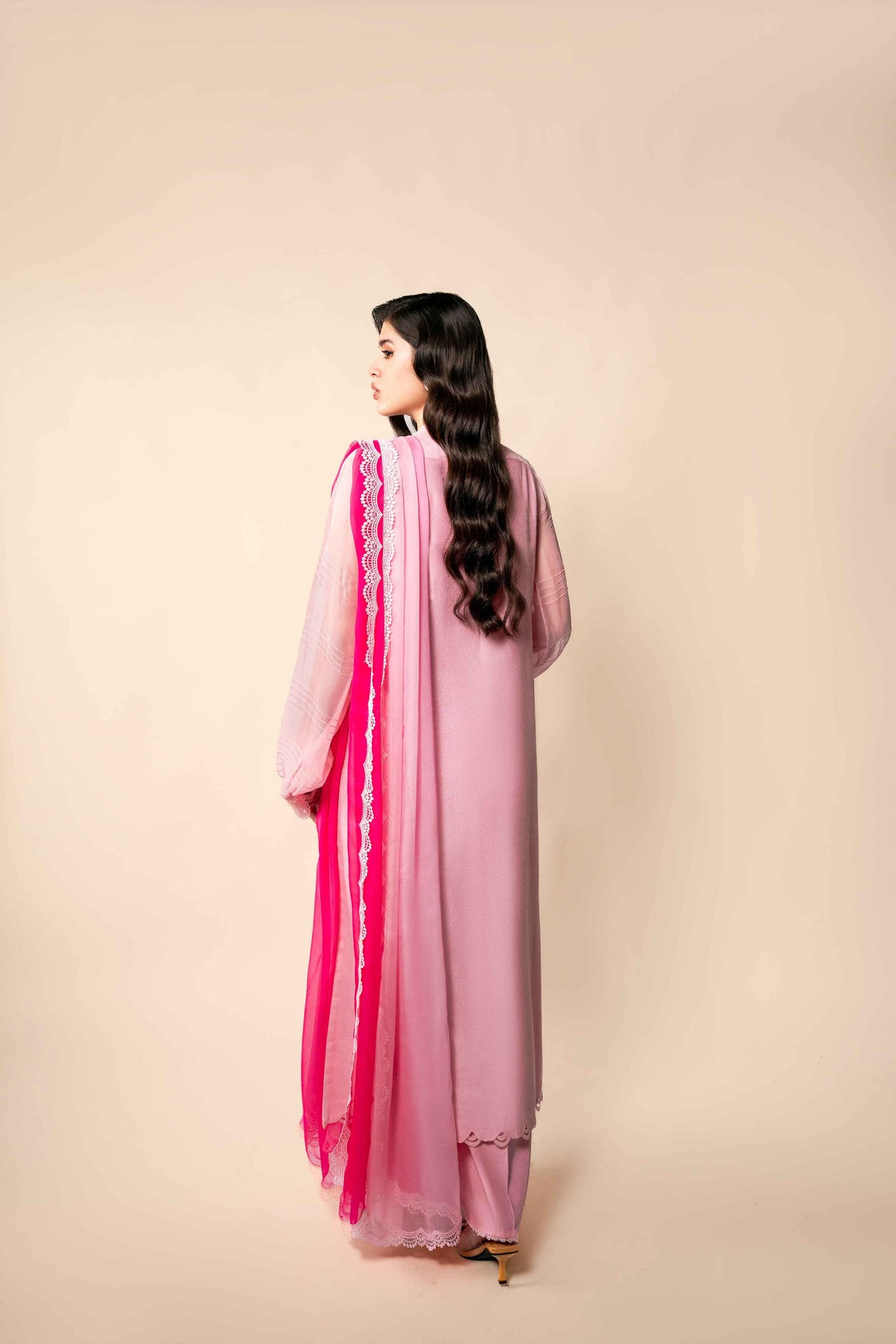 Body pink silk cotton net, with Baroque self on self embroidery. Shirt is enhanced with laces stitching details, showcase exceptional craftsmanship.
